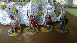 I brought some much needed missile levy for my Anglo-Saxon/Danish force being in the form of some Slingers. I painted them up quite quickly finishing them over a few nights - very unlike me I know.