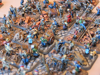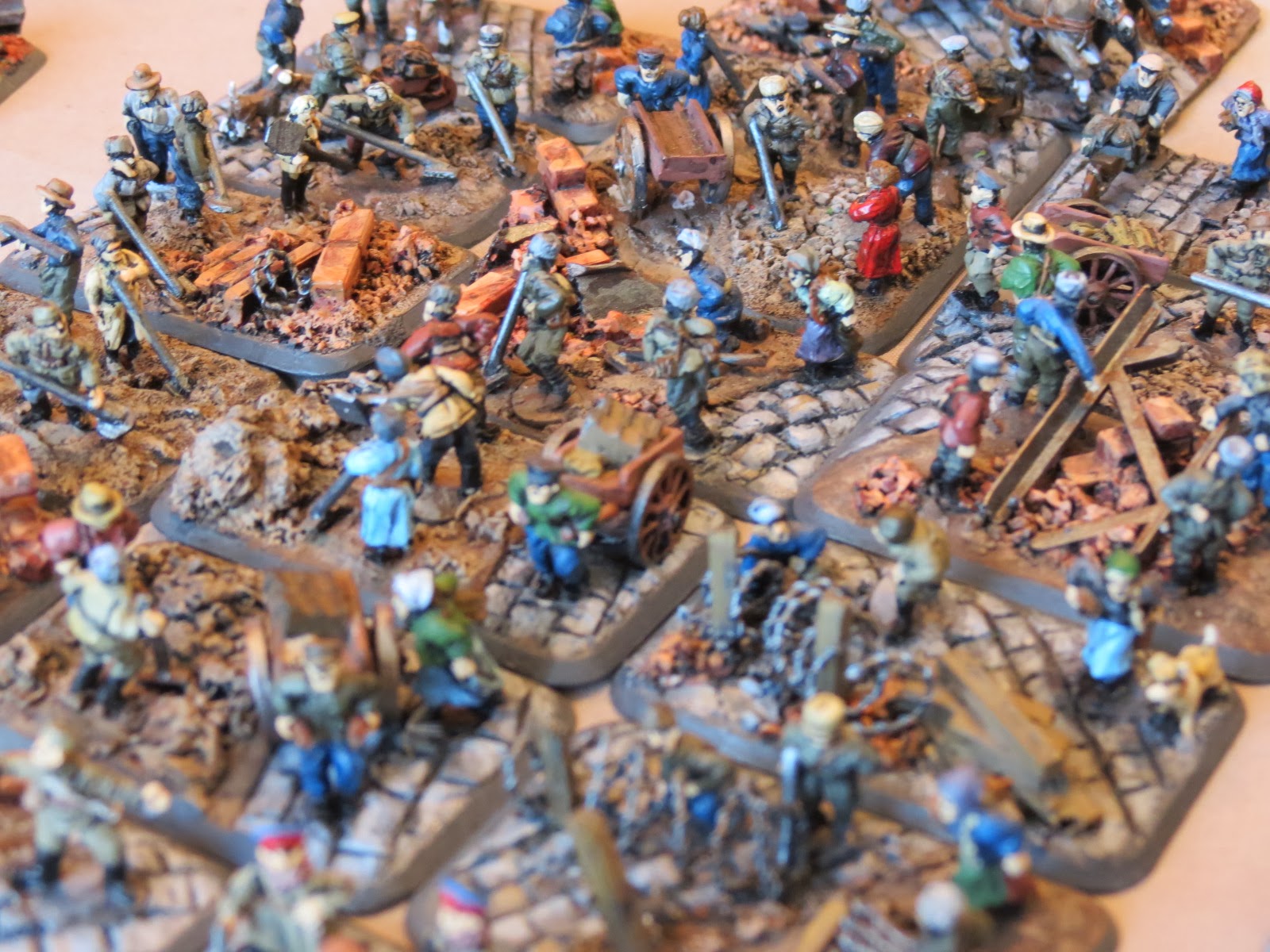 I have based all my Russian models around this force, having the majority of my models in the heart of a bombed out and wrecked city and other units setting up defenses on the edges. The cobble streets are just a poly-filler base with lines scoured through with a knife before it sets, looks good and easy enough to do.